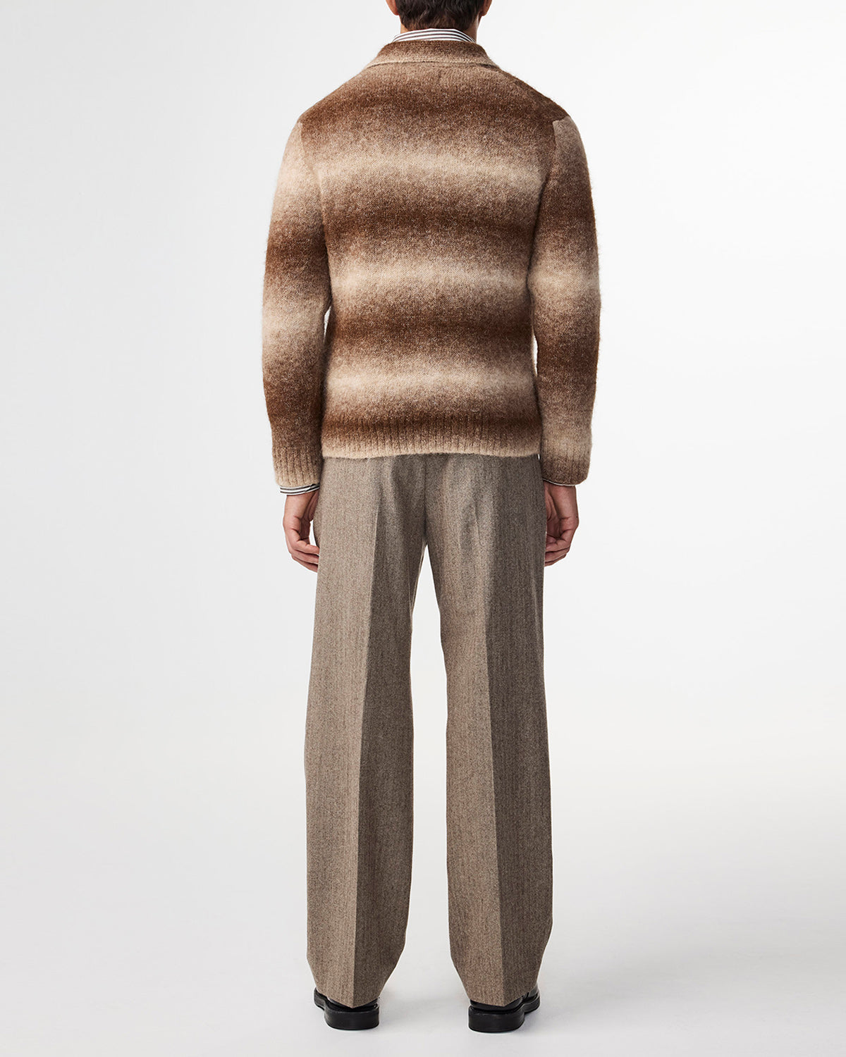 Classic cardigan crafted from a smooth wool and alpaca blend, featuring a textured bubble stitch and a gradient color design and topped with Mother-of-Pearl buttons.