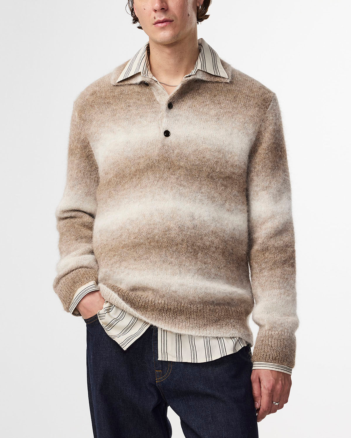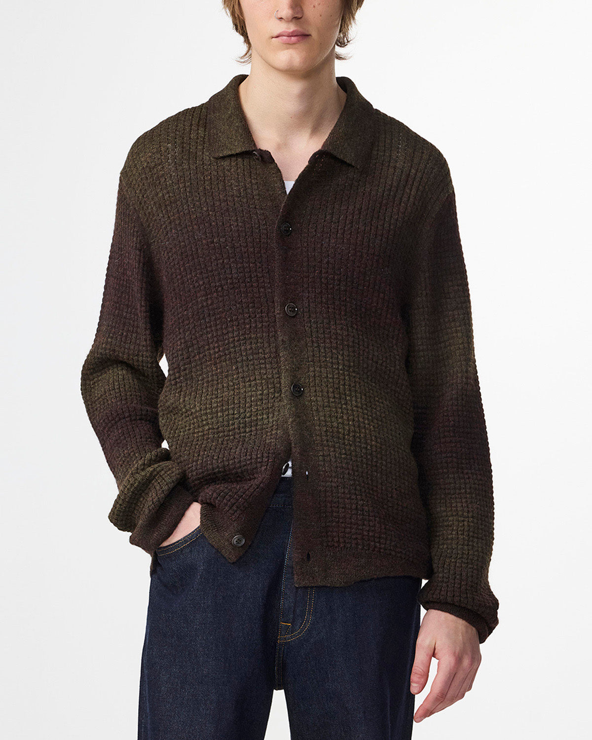 Regular fit Textured bubble stitch Gradient color design Mother-of-Pearl buttons Style number 2560000106 Made in Turkey