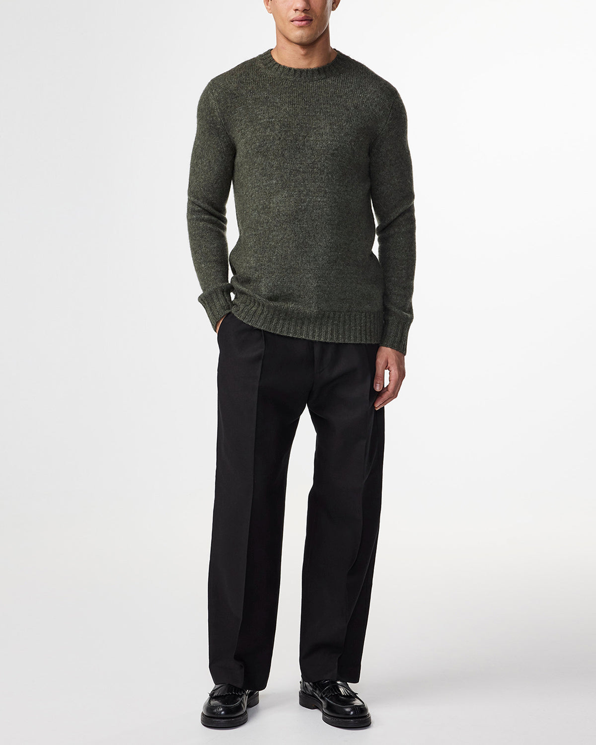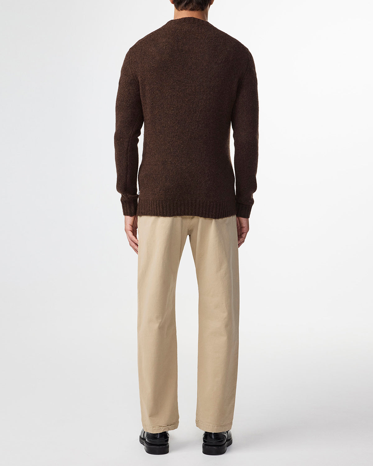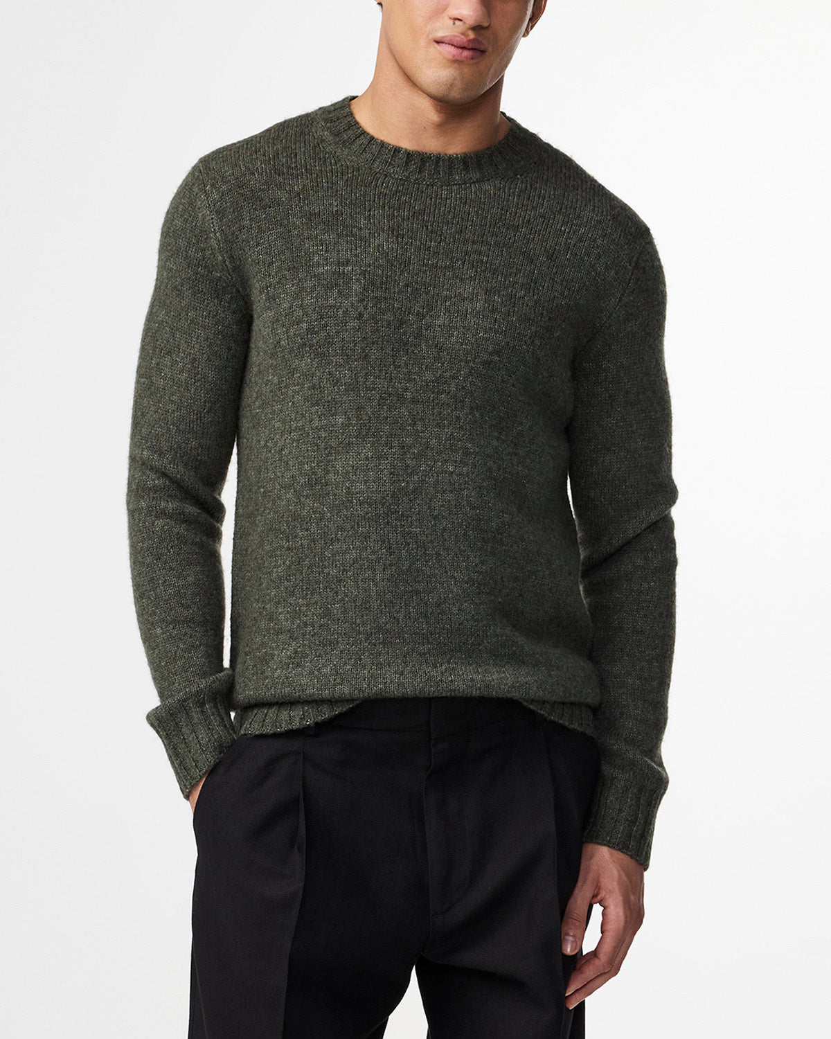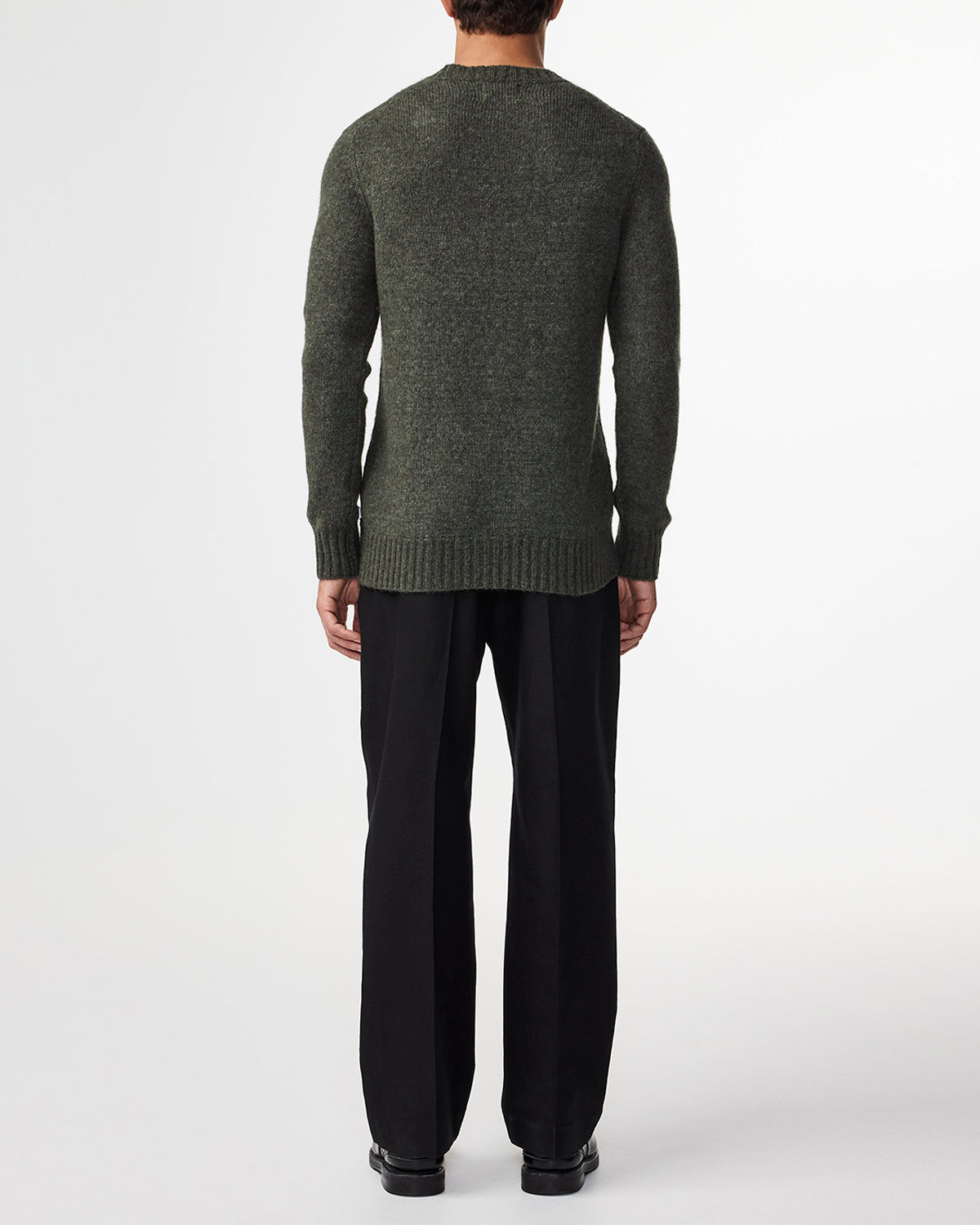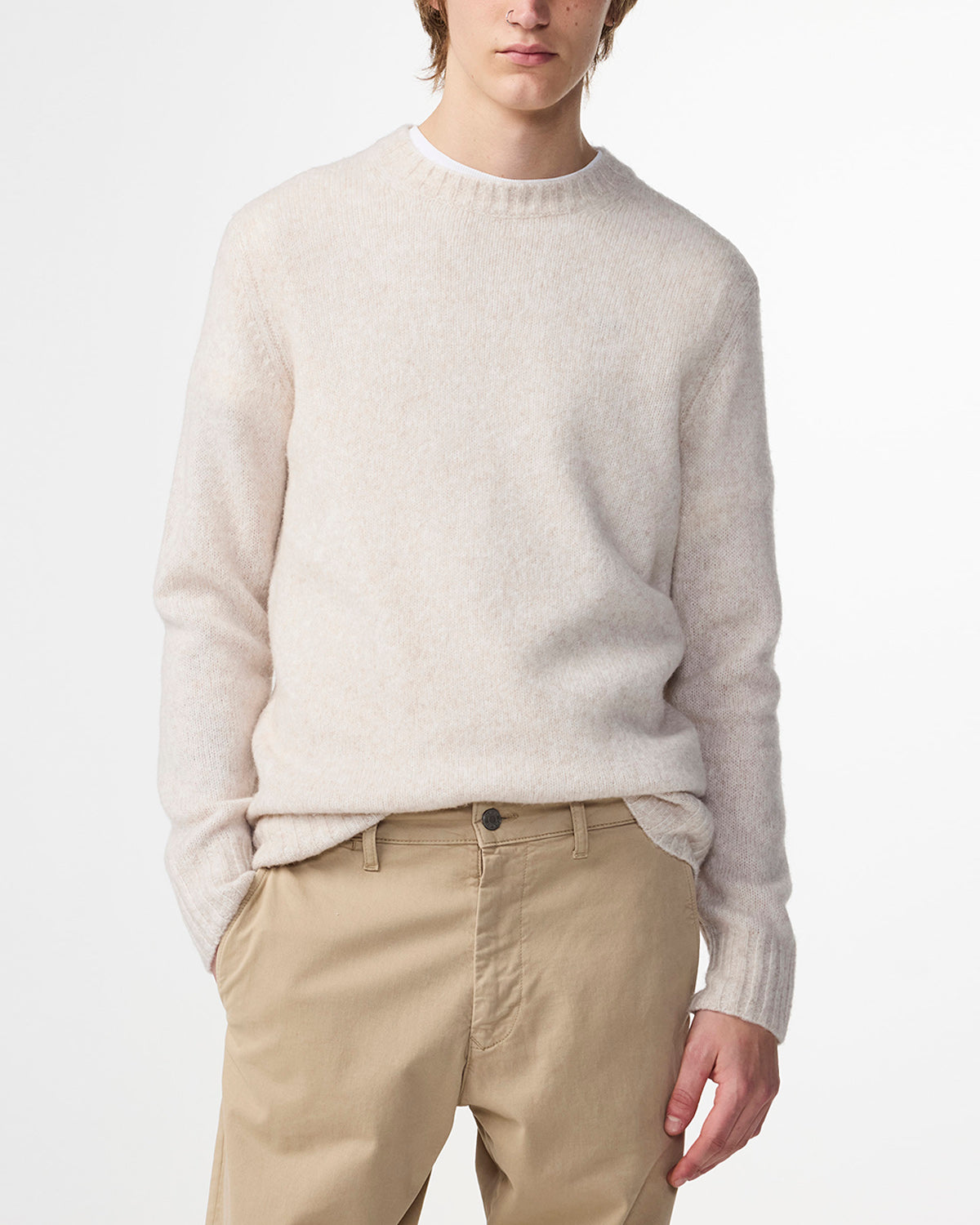 Soft touch crewneck pullover crafted in a soft alpaca blend fabric from Italy, designed in mixed colours and open-stitch fabric.