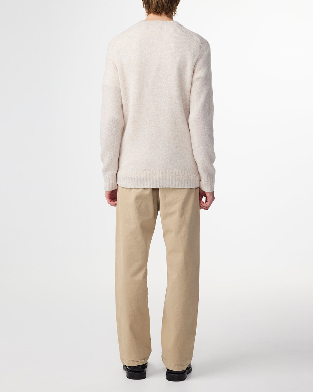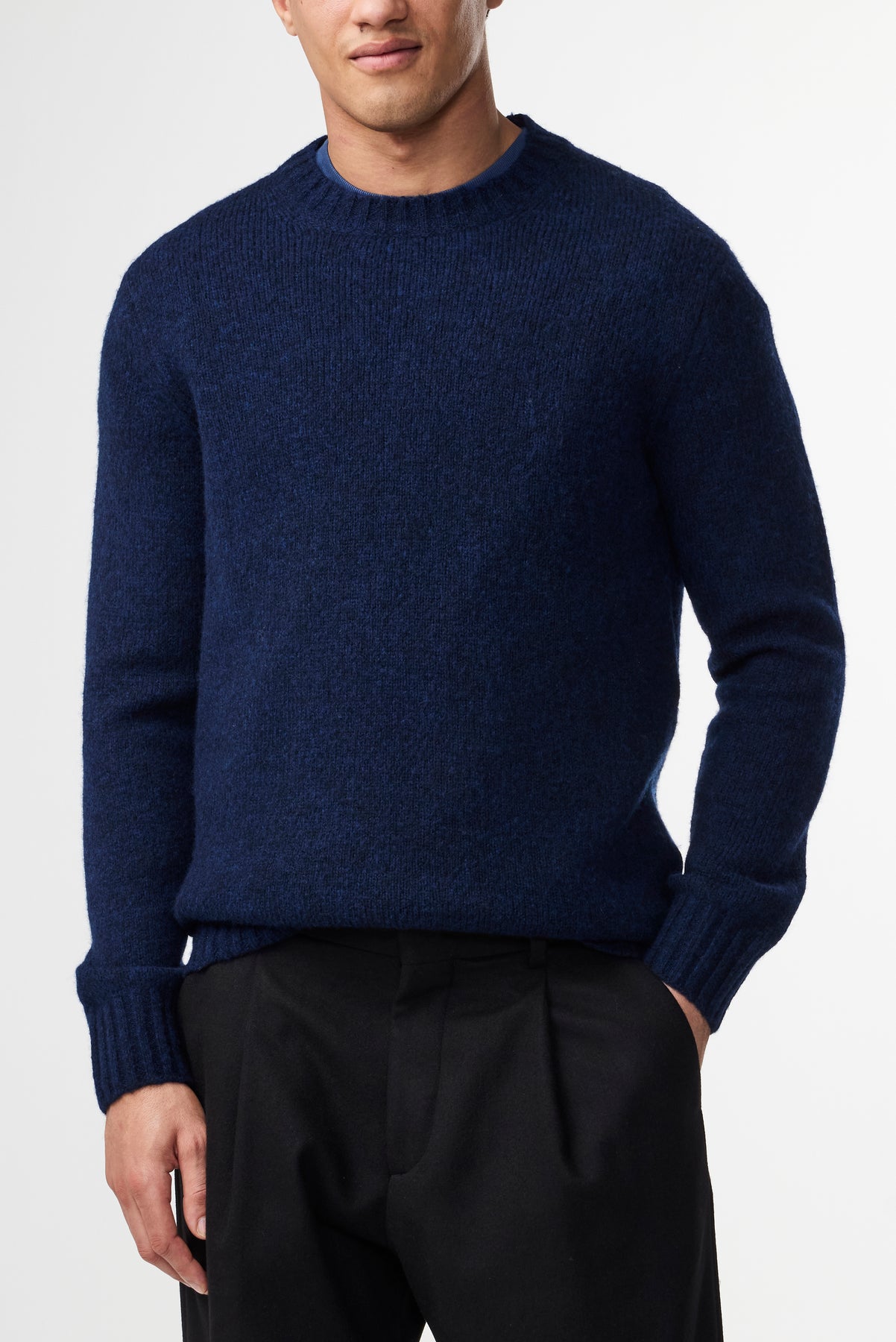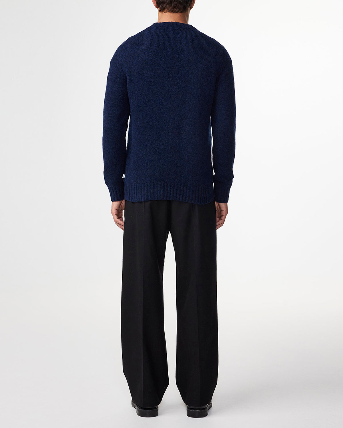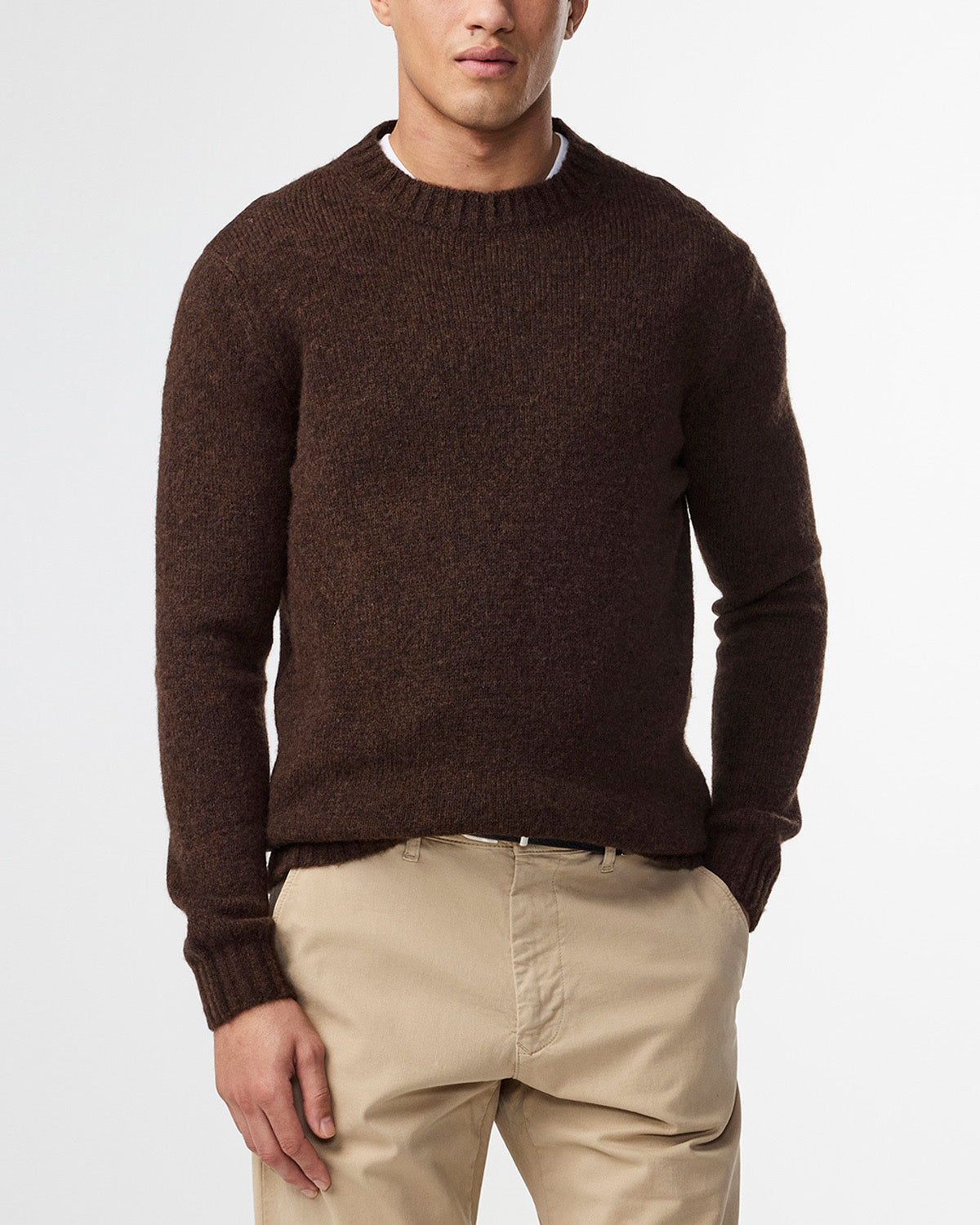 Soft touch crewneck pullover crafted in a soft alpaca blend fabric from Italy, designed in mixed colours and open-stitch fabric.