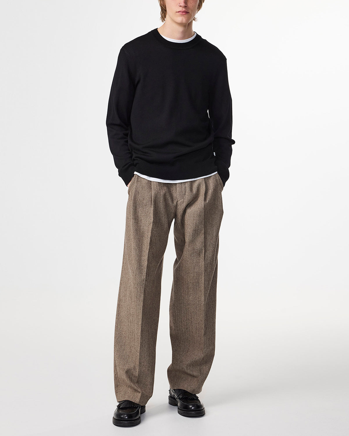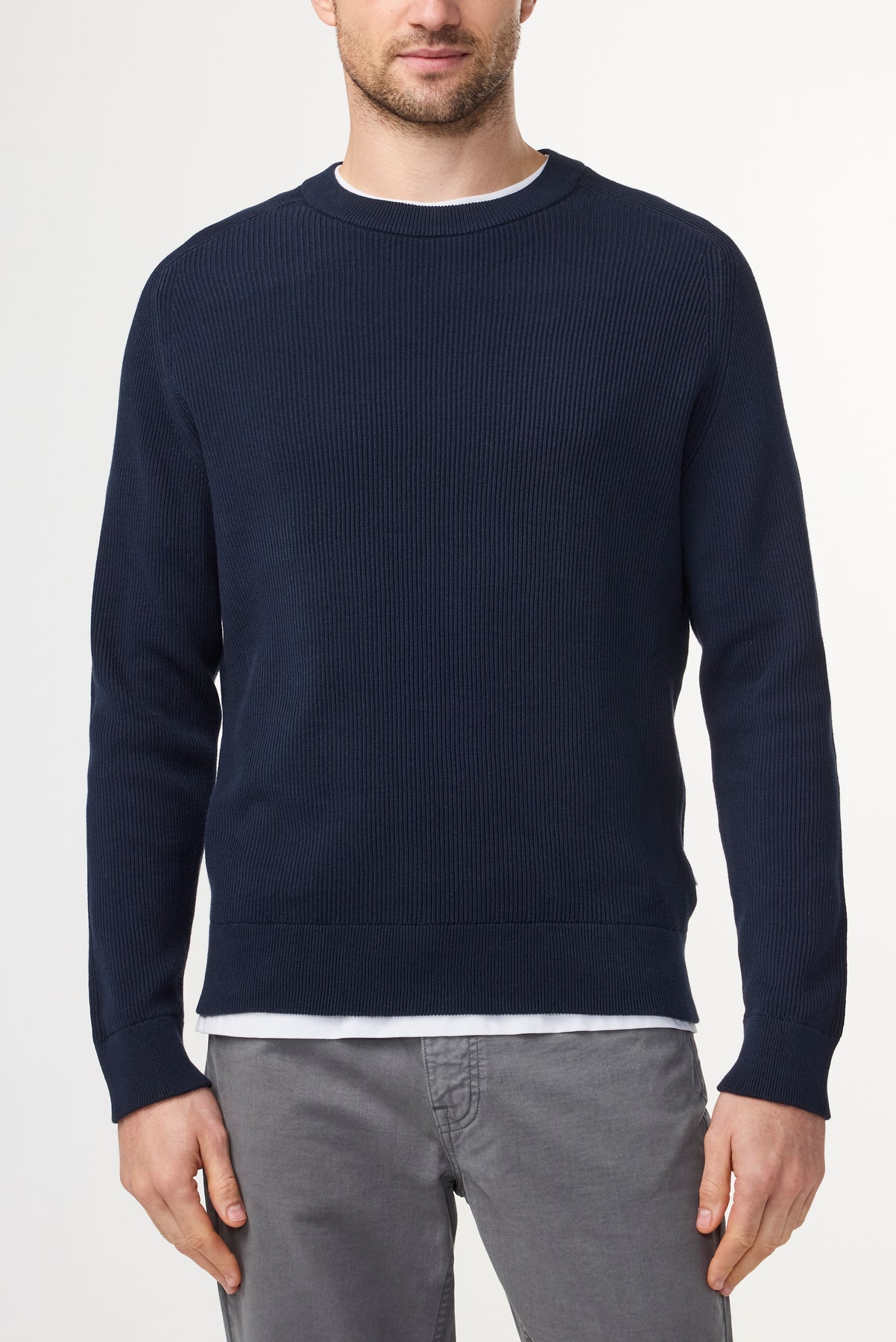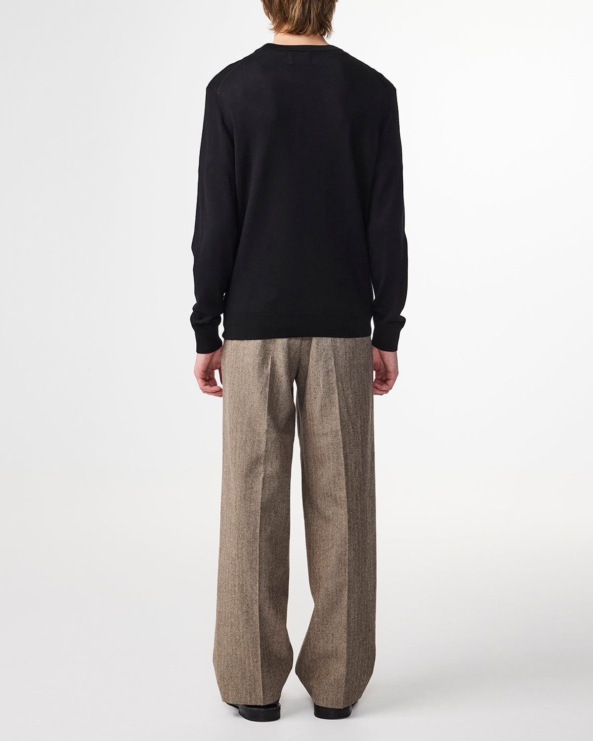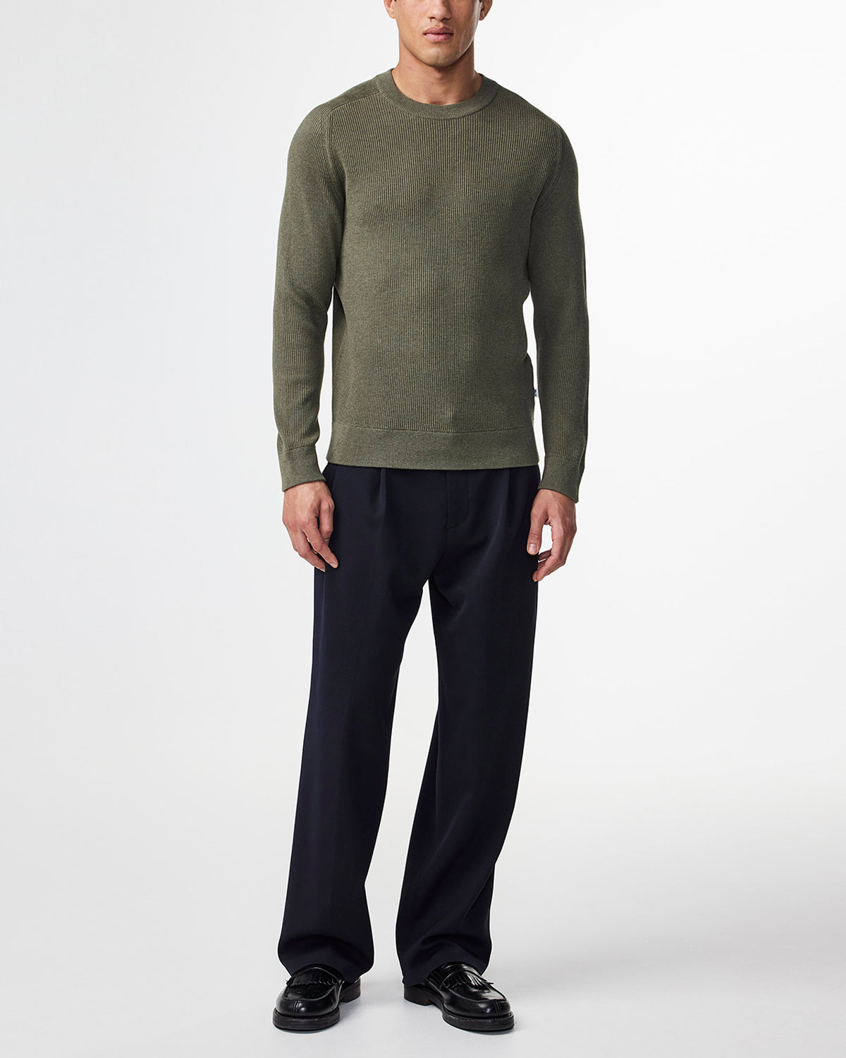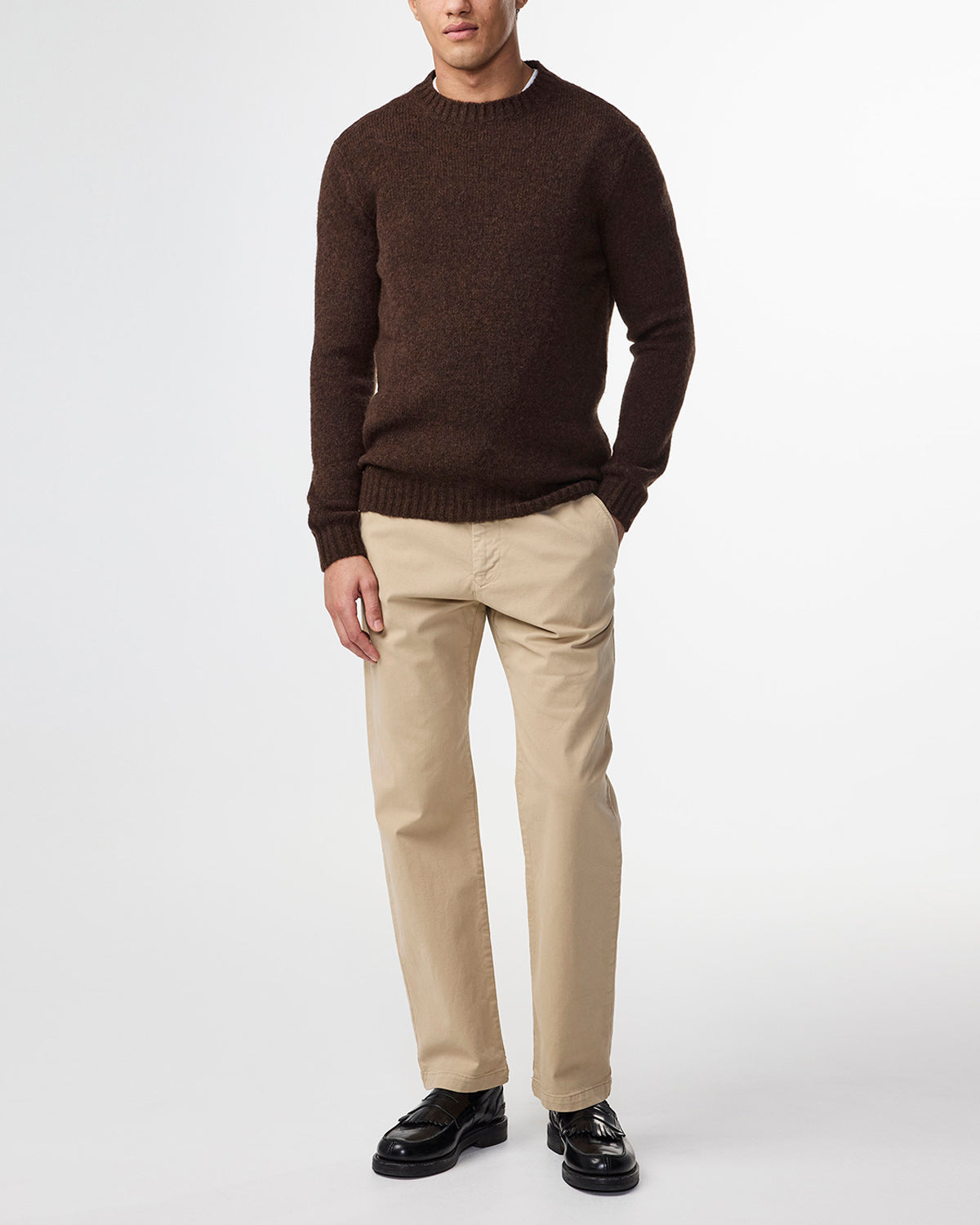Soft touch crewneck pullover crafted in a soft alpaca blend fabric from Italy, designed in mixed colours and open-stitch fabric.