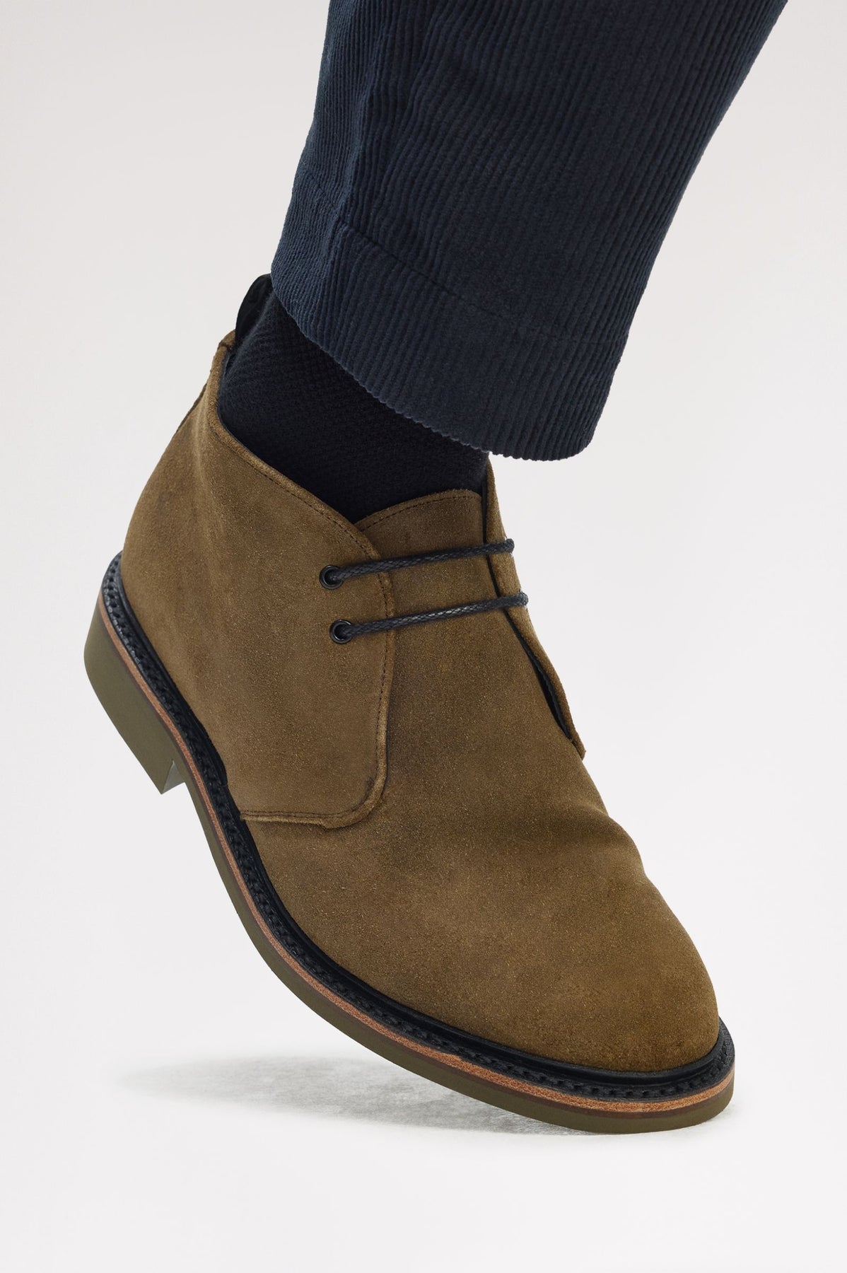 Crafted by hand at British shoemaker Sanders’ Northamptonshire factory, our new Chukka Boot is equal parts smart and rugged. A timeless silhouette crafted with waxed suede uppers and Dainite soles.